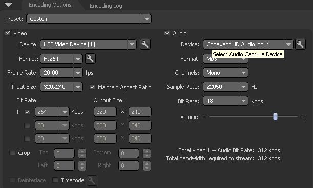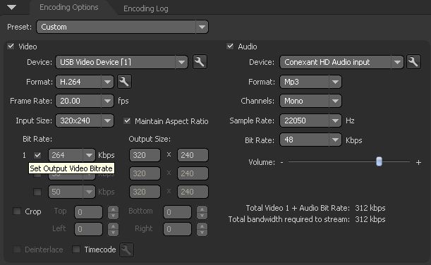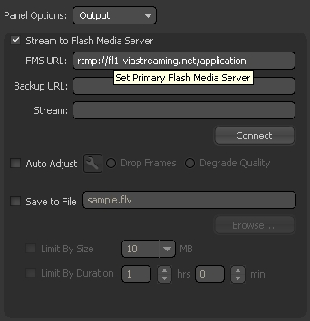 - Bit Rate: Make your selection based on the bitrate available on your ViaStreaming Flash Media Server account (reported on activation email)