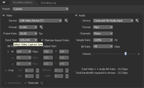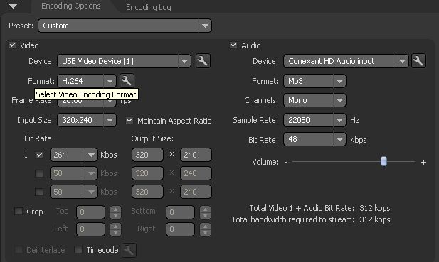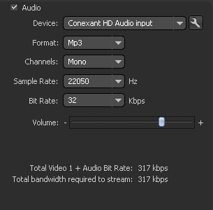 Note for video users: If you selected video bitrate at 200kbps and your account is at 300kbps, audio bitrate must be equal or lower than 100kbps (200kbps+100kbps= 300kbps: your account tot. bitrate)