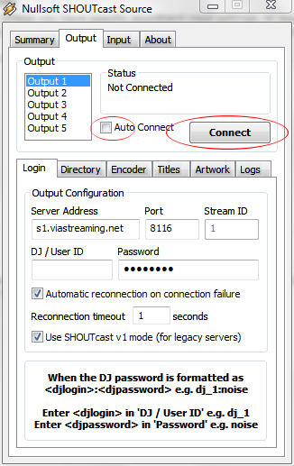 Last, but not least, you need to select option "Use SHOUTcast v1 mode (for legacy server)" to allow encoder to connect on SHOUTcast Server v.1.9.8 (Current Stable Version).
